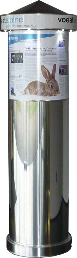 | Hinweis: Alle unsere Litfaßsäulen sind magnetisch. Plakate und Infos können mit Magneten befestigt werden. Wir liefern unsere Litfaßsäulen fix und fertig an einem Stück. Diese sind sofort Einsatzbereit. Eine Montage in Ihren Räumen entfällt. |