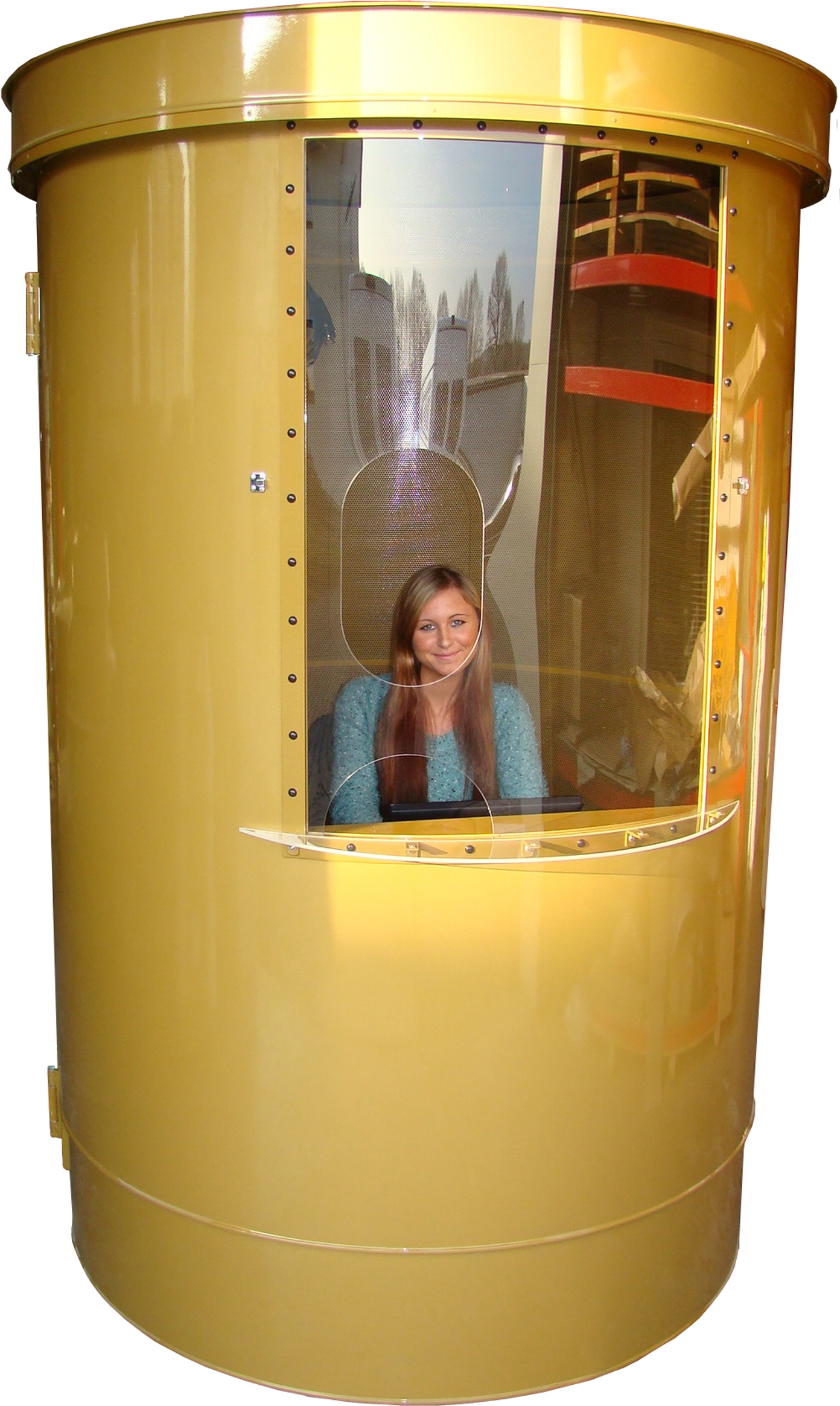Zugangstür ca. 700 x 2000 mm integriert, außen dem Säulendurchmesser rund angepasst.