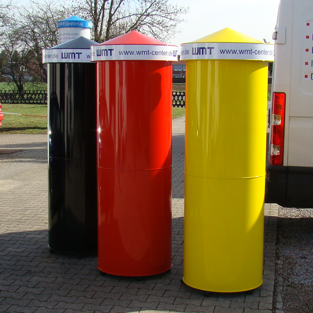 Hinweis: Wir liefern unsere Litfaßsäulen fix und fertig an einem Stück. Diese sind sofort Einsatzbereit. Eine Montage in Ihren Räumen entfällt in der Regel. Anlieferungen zu Messegeländen / Messeständen nur nach Absprache.
