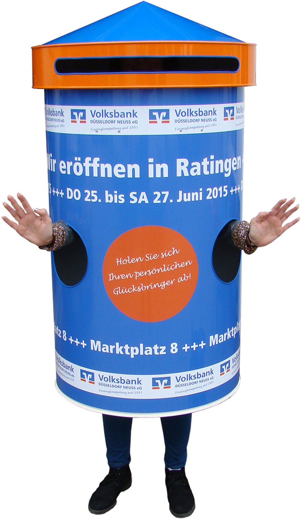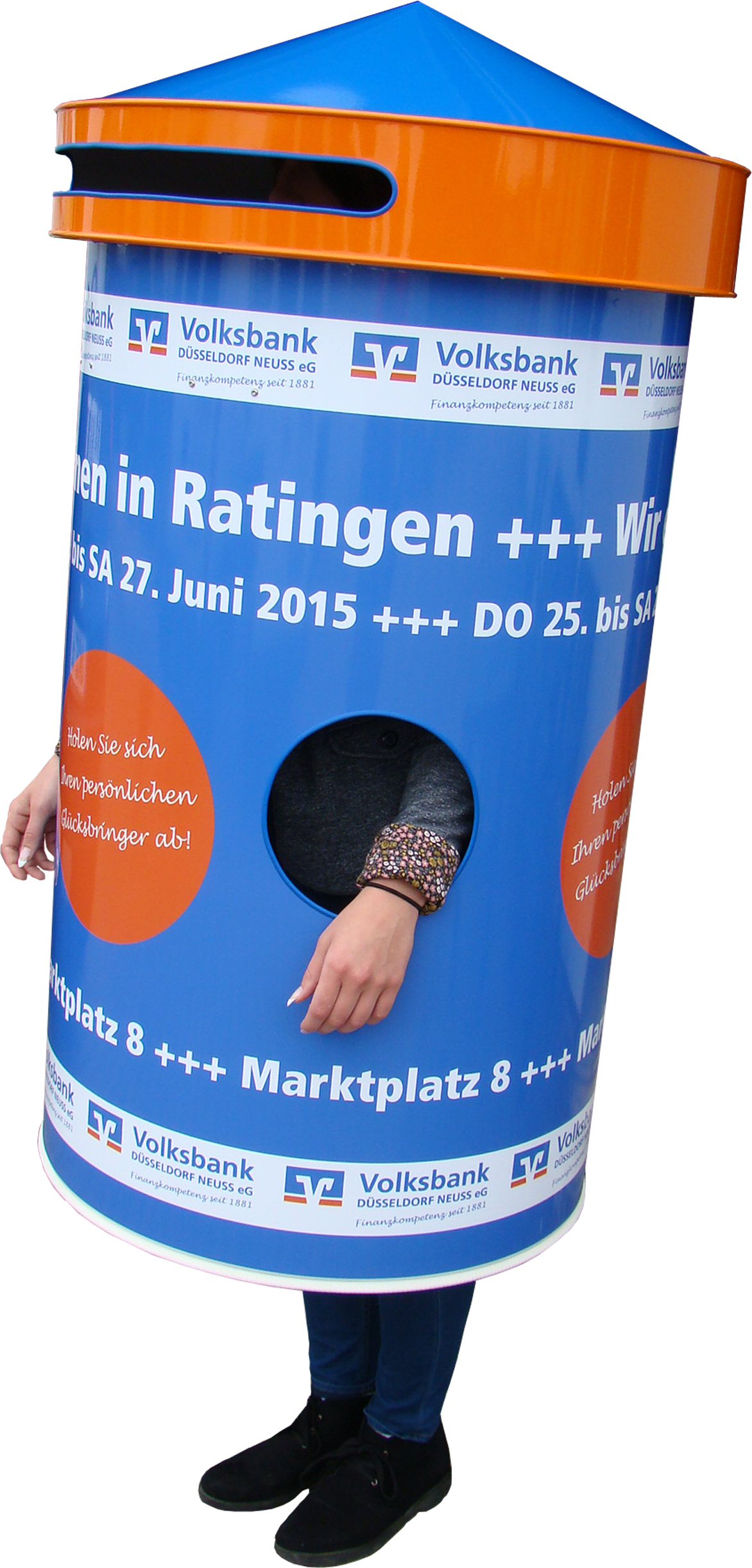 Startseite » LITFAßSÄULEN » LITFAßSÄULEN MIT MEHRFACHNUTZUNG » Laufsäule Volksbank - Bauhöhe 1,30 m, Ø 62 cm