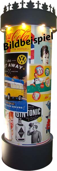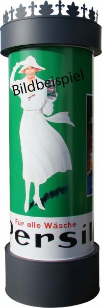 Litfaßsäule Berlin (Ernst Litfaß) – Bauhöhe 2,40 m, Ø 76 cm, inkl. Krone. Eine Dekosäule für Events und Messen, rund um Berlin und Ernst Litfaß. Wie wir alle wissen ist Ernst Litfaß der Erfinder der Litfaßsäule. Wir produzieren seit über 30 Jahren die Litfaßsäule neu und machen diese für alle käuflich.