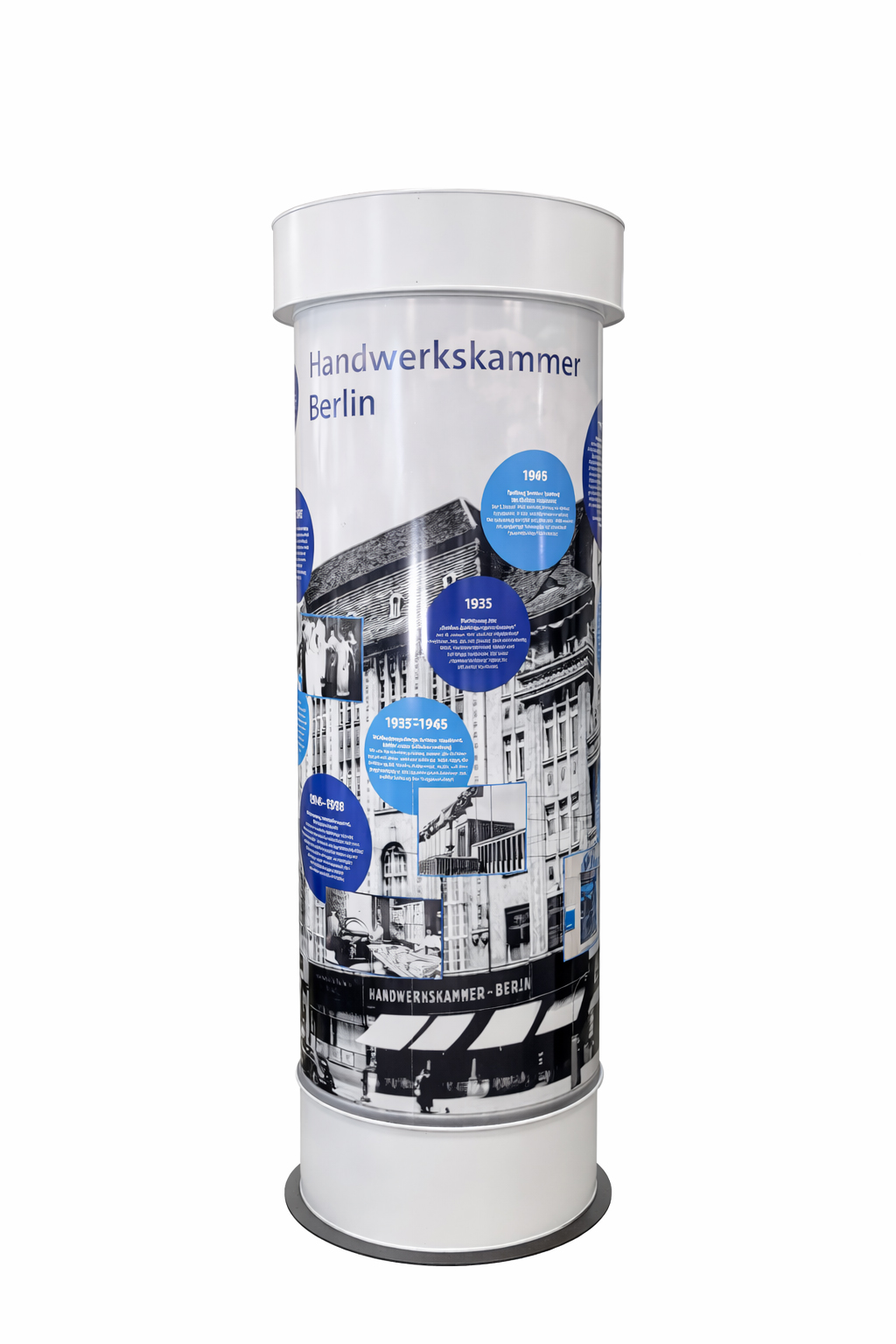 Durch ihre robuste Bauweise und das zeitlose Design fügt sich die Litfaßsäule harmonisch in historische Stadtbilder, Fußgängerzonen und Marktplätze ein – ohne aufdringlich zu wirken.