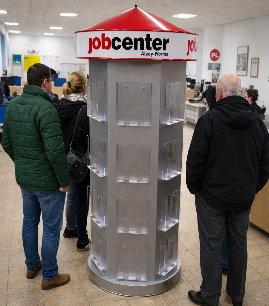 PROSPEKTSÄULE - Bauhöhe 2,20 m, Ø 70 cm mit 24 Prospekthaltern DIN A4